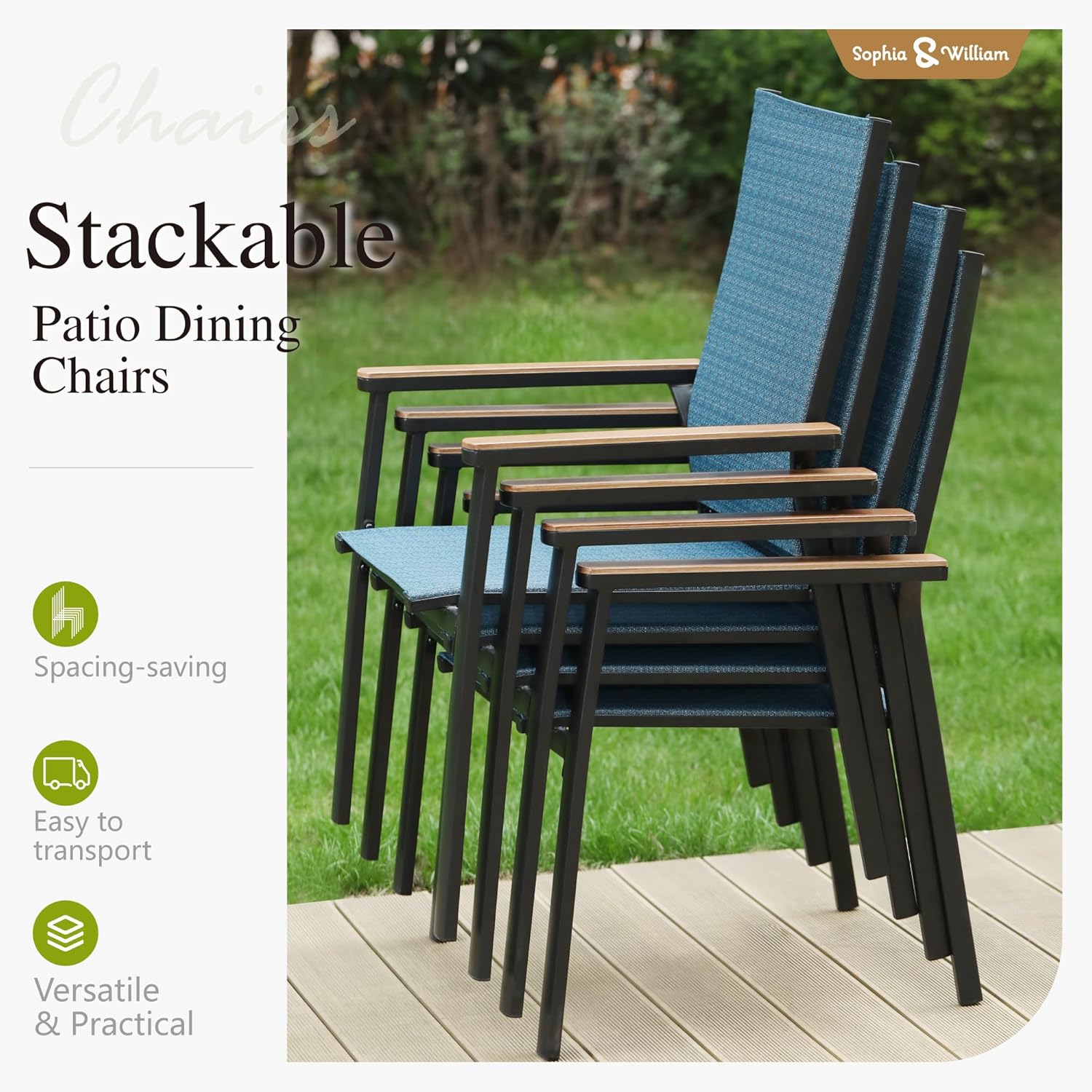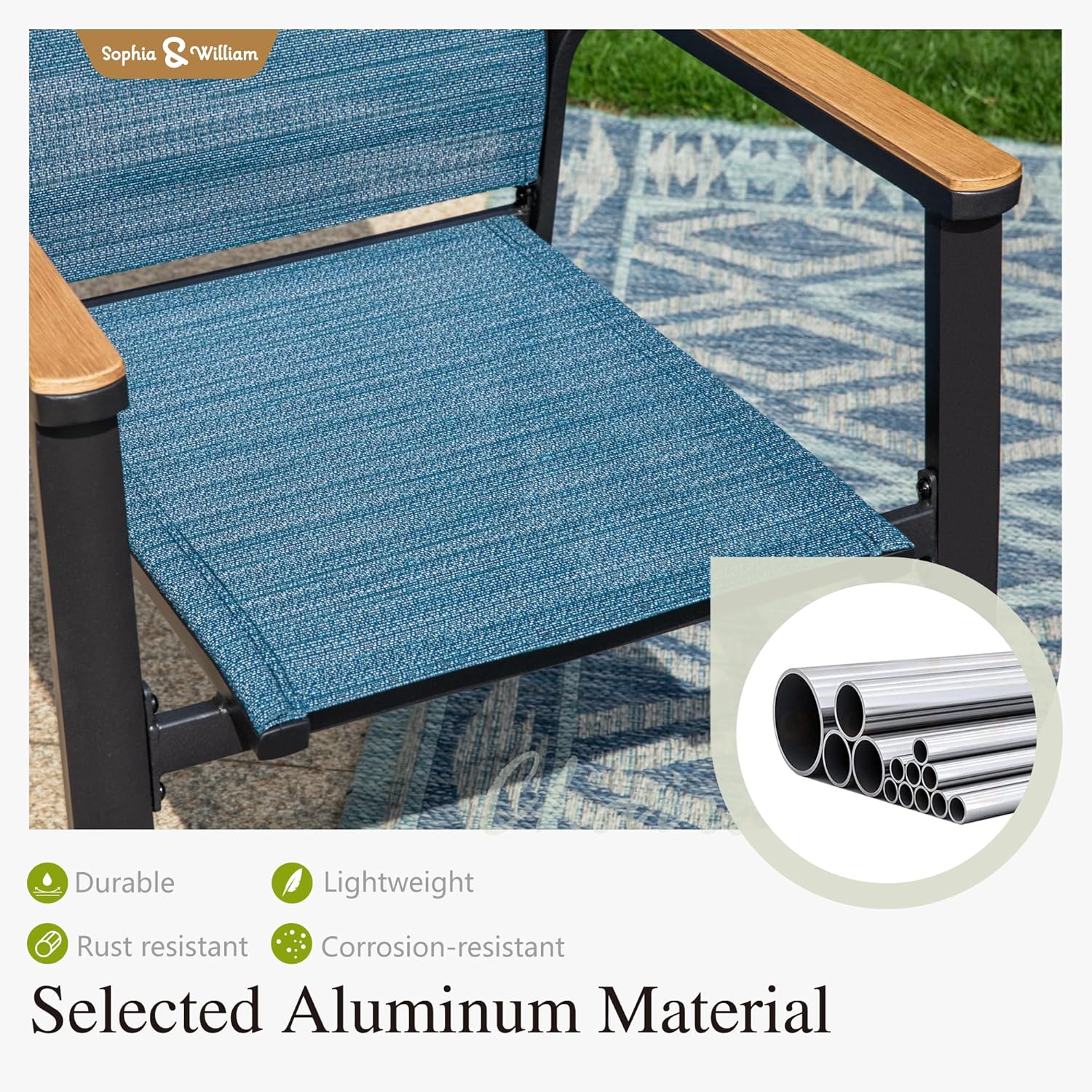 Sophia & William Lightweight Aluminum Outdoor Chair 4 Pieces, Rust-Resistant Aluminum Frame Patio Chairs, Stackable Design for Space Saving-Blue