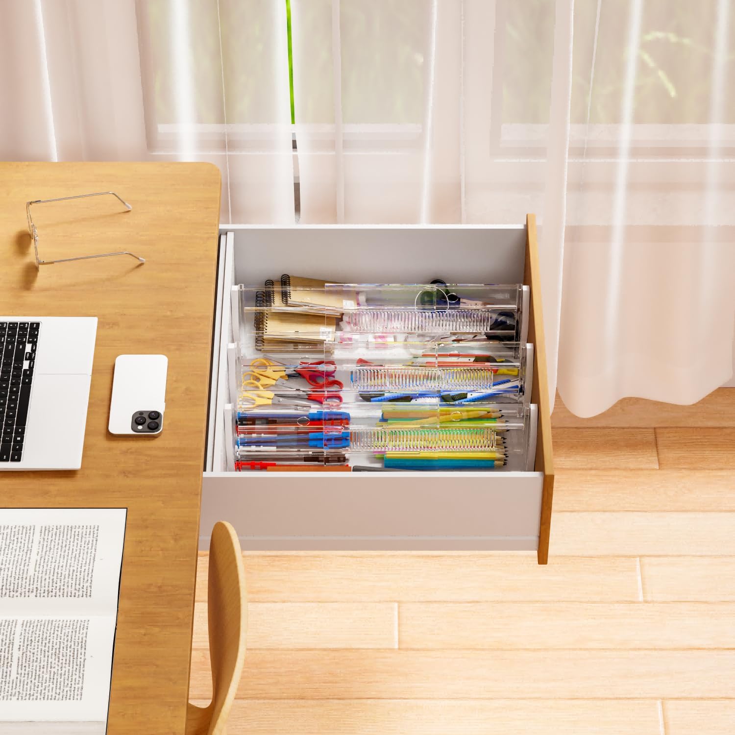 【Multipurpose/Space Saving】The thickness of the divider is only 0.45'', this design will improve the space utilization,Use these to create customized drawer storage anywhere. Ideal for keeping in drawers organized and items easy to find what you need. Drawer organizer divider can be used to organize kitchen utensils, tools, baby clothes, socks, toys, snacks, etc,and Perfect for organizing underware, baby clothes, kitchen utensils, tableware, makeup